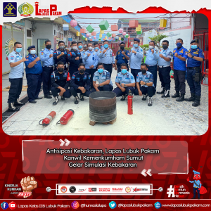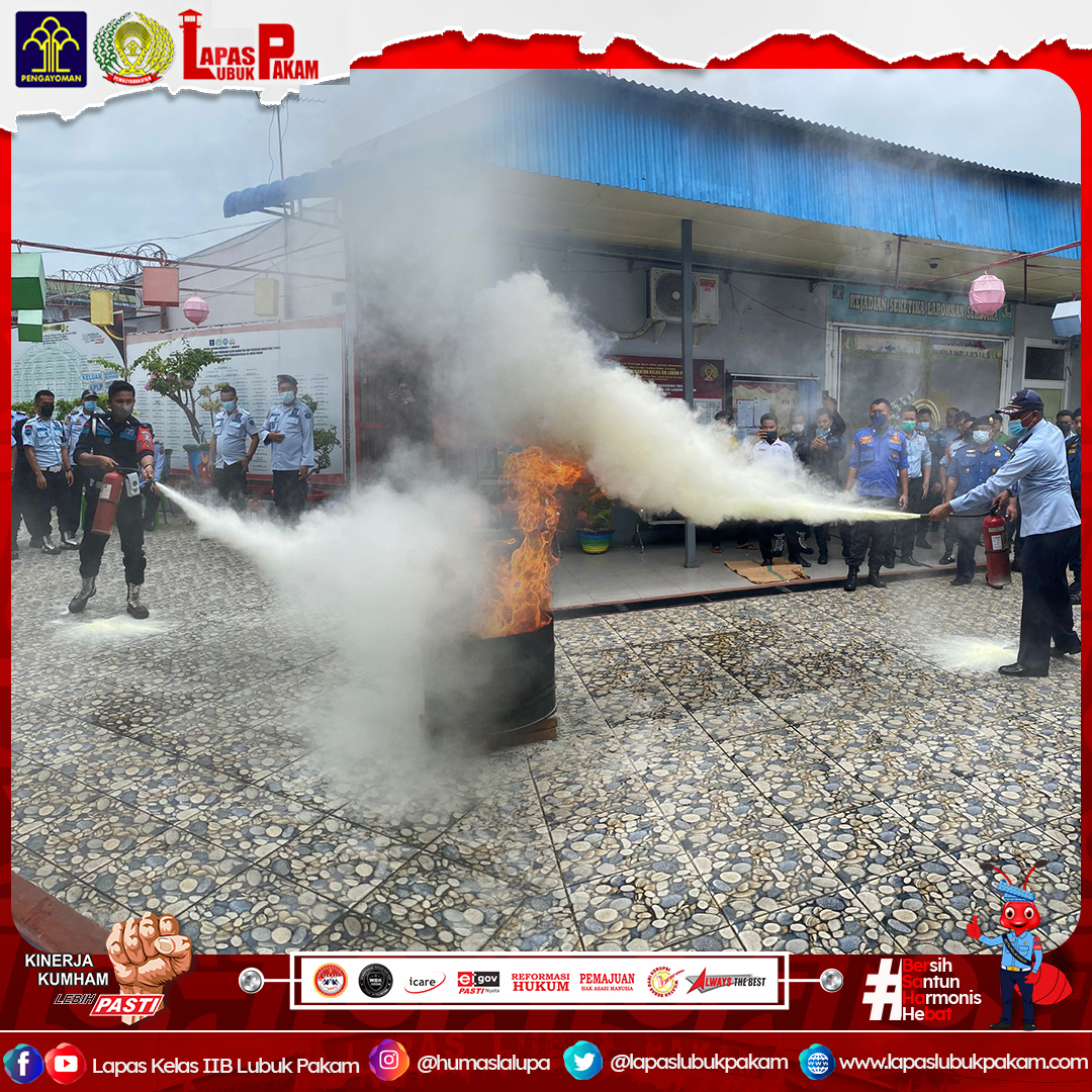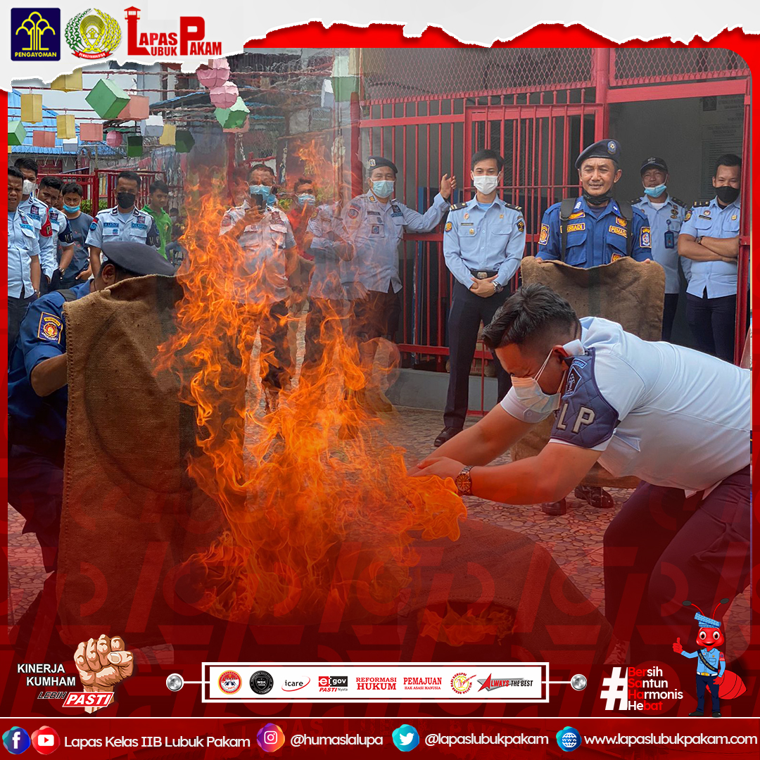 Lubuk Pakam – Antisipasi terjadinya kebakaran, Lembaga Pemasyarakatan Kelas IIB Lubuk Pakam Kanwil Kemenkumham Sumut menggelar simulasi kebakaran, yang bekerjasama dengan Dinas Pemadam Kebakaran dan Penyelamatan Kabupaten Deli Serdang.