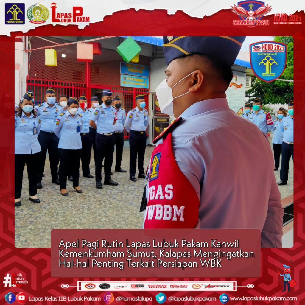 Apel Pagi Rutin Lapas Lubuk Pakam Kanwil Kemenkumham Sumut, Kalapas Mengingatkan Hal-hal Penting Terkait Persiapan WBK