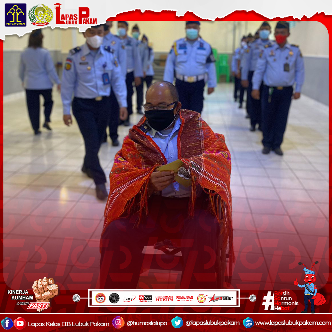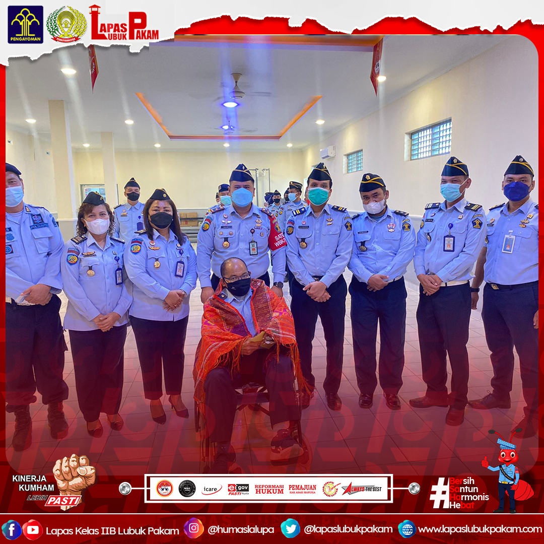Acara juga dirangkaikan dengan pelepasan masa purnabakti Pegawai Lapas Lubuk Pakam yang sering disapa “Pak Tanggang” sebagai wujud penghargaan dan apresiasi terhadap dedikasinya selama mengabdi di Jajaran Pemasyarakatan khususnya Lapas Lubuk Pakam,