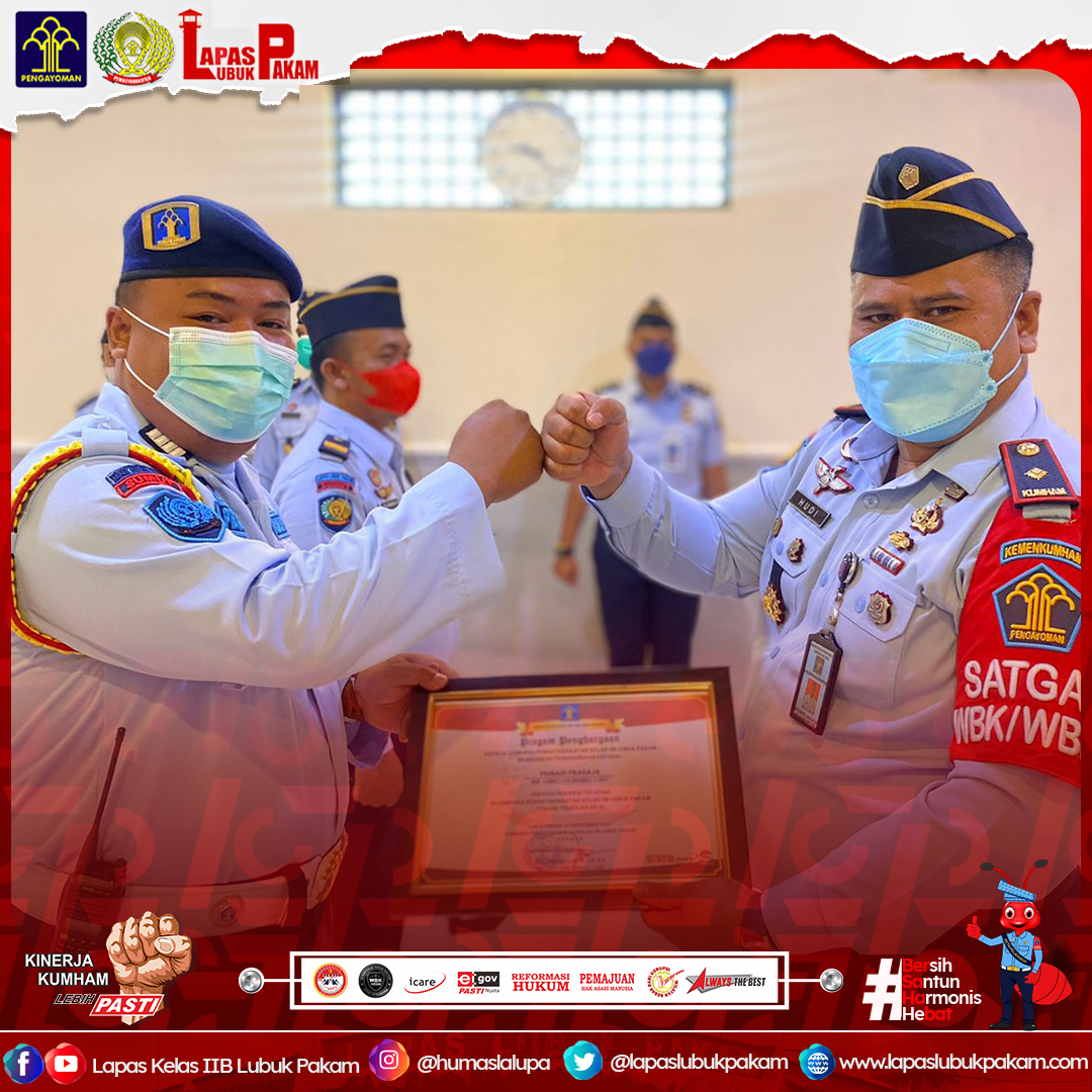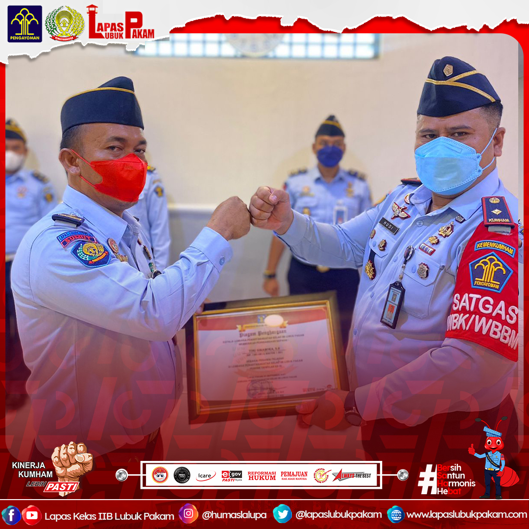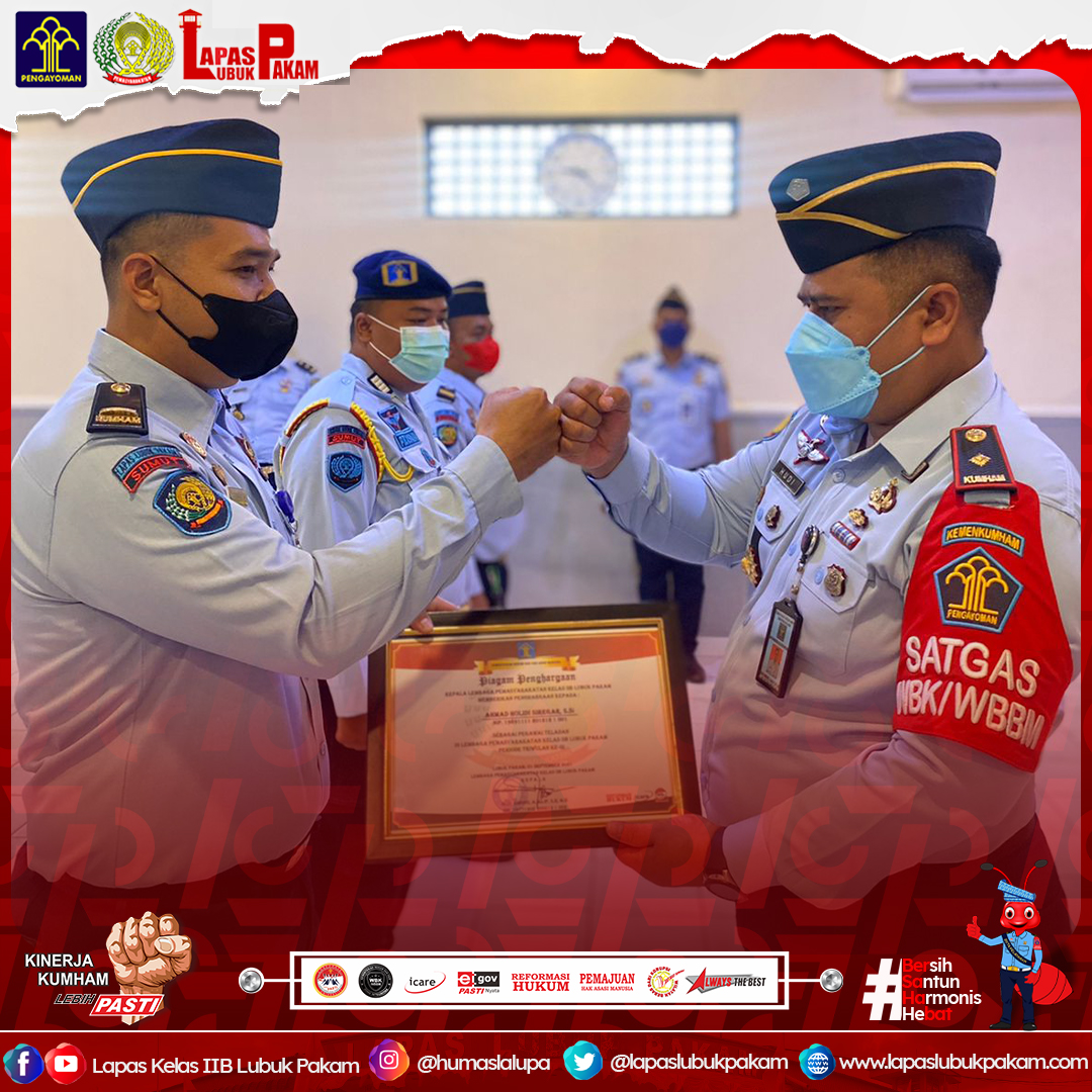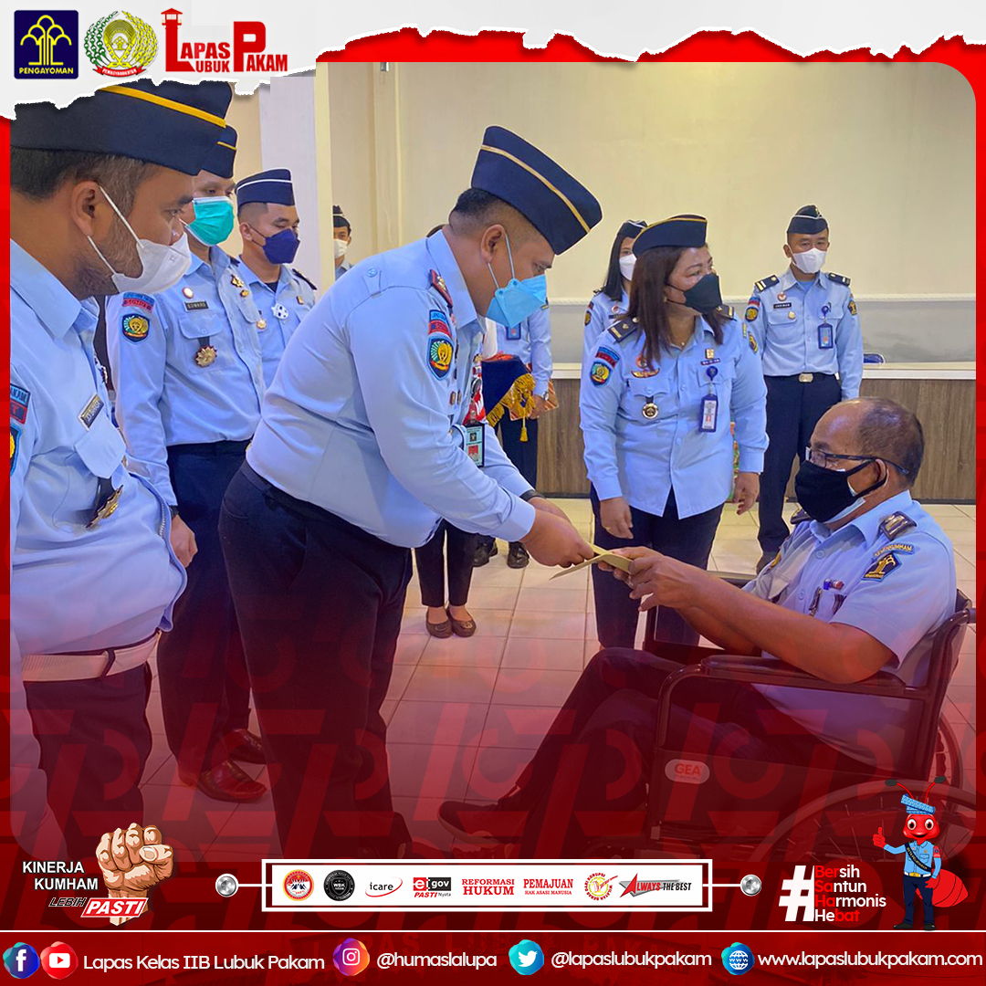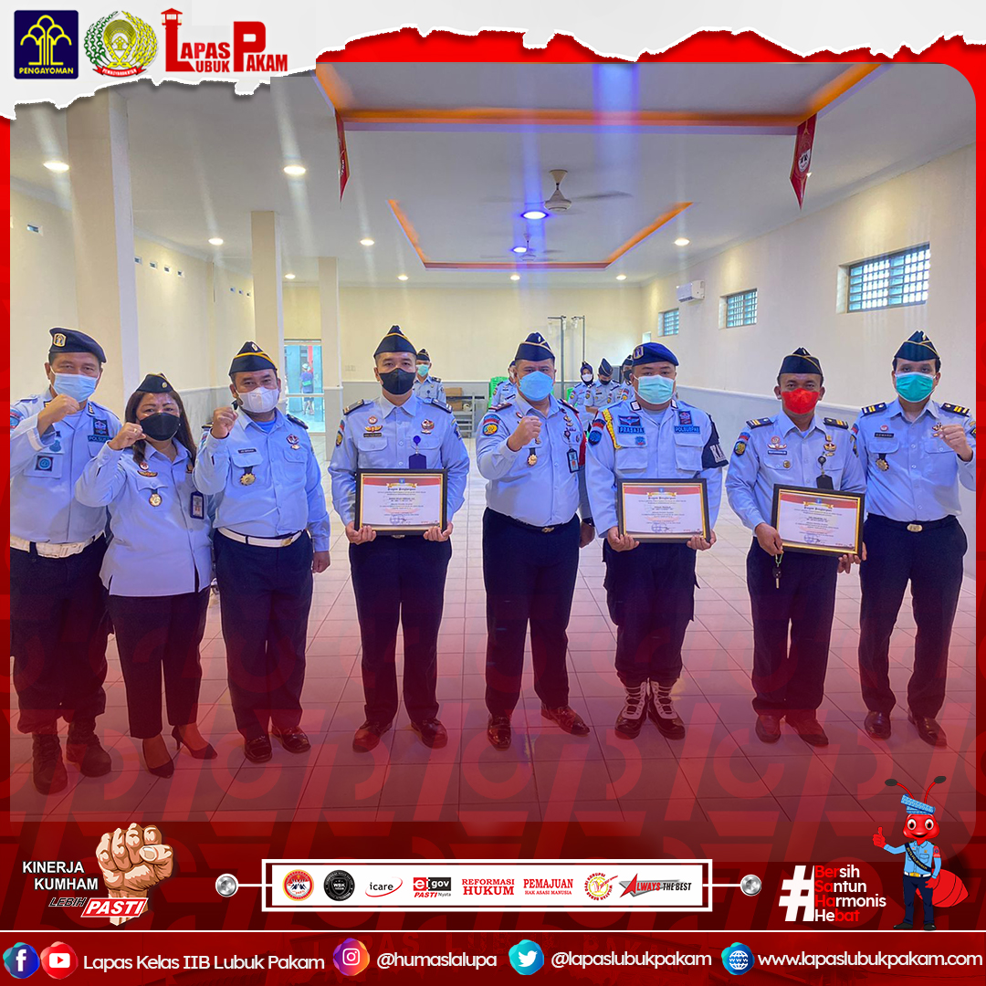 Lubuk Pakam – Dalam rangka meningkatkan semangat pembangunan Zona Integritas Wilayah Bebas dari Korupsi (WBK), Kepala Lembaga Pemasyarakatan Kelas IIB Lubuk Pakam pimpin kegiatan apel pagi sekaligus memberikan penghargaan kepada 3 ( tiga ) pegawai Lapas Lubuk Pakam dan juga Upacara pelepasan Petugas Purnabakti yang bertempat di Aula Sahardjo, Lapas Lubuk Pakam (13/09)